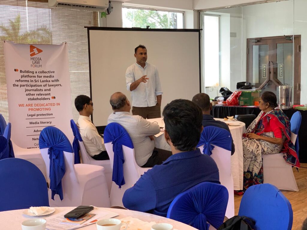 The workshop featured expert contributions from Dr. Viranjana Herath, Mr. Aingkaran Kugathasan (Attorney-at-Law), and Senior Journalist Mr. Robert Anthony, who shared insights into legal frameworks governing digital spaces, ethical responsibilities in journalism, and practical strategies to counter false, misleading, and harmful information online. Speakers also highlighted the importance of cooperation between media actors and lawyers in safeguarding freedom of expression while ensuring accountability and the protection of digital rights.
