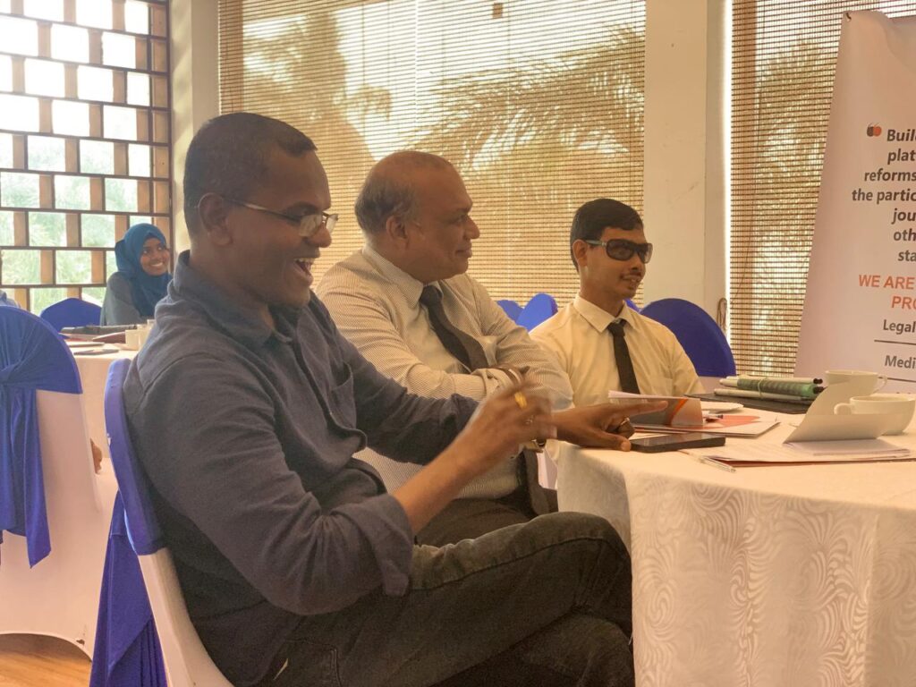 Participants actively engaged in group discussions and interactive sessions, exchanging experiences, identifying emerging challenges in the digital information ecosystem, and exploring solutions to strengthen professional networks and enhance legal and journalistic responses to online harms.