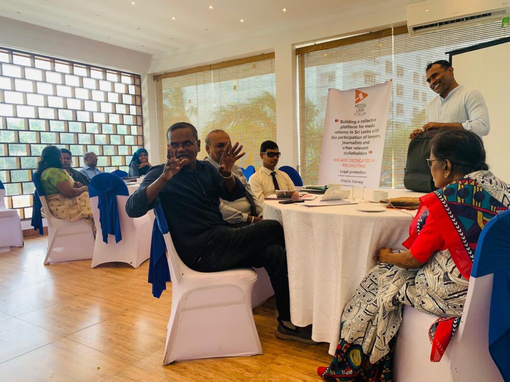 The workshop featured expert contributions from Dr. Viranjana Herath, Mr. Aingkaran Kugathasan (Attorney-at-Law), and Senior Journalist Mr. Robert Anthony, who shared insights into legal frameworks governing digital spaces, ethical responsibilities in journalism, and practical strategies to counter false, misleading, and harmful information online. Speakers also highlighted the importance of cooperation between media actors and lawyers in safeguarding freedom of expression while ensuring accountability and the protection of digital rights.