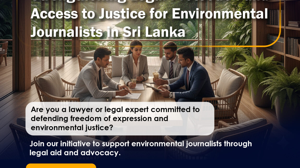 4 weeks ago Call for Applications (Lawyers & Legal Experts) – Strengthening Legal Protection and Access to Justice for Environmental Journalists in Sri Lanka
